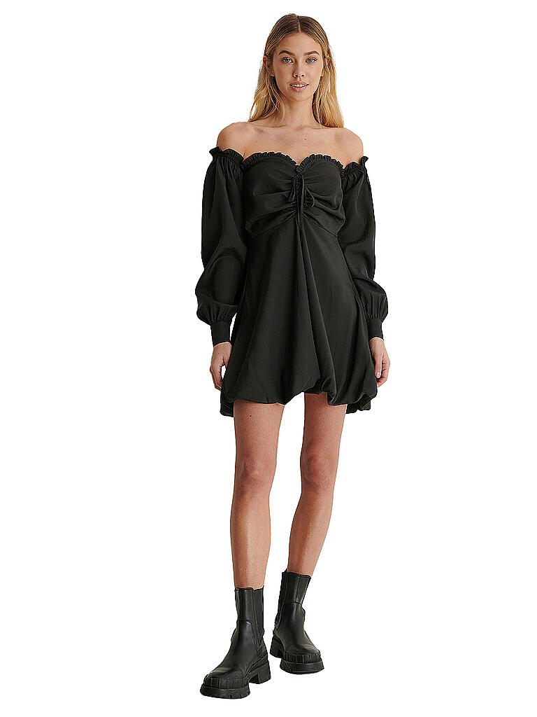 Kleid Mit Eckigem Ausschnitt Und Kordelzug Schwarz Na Kd Com